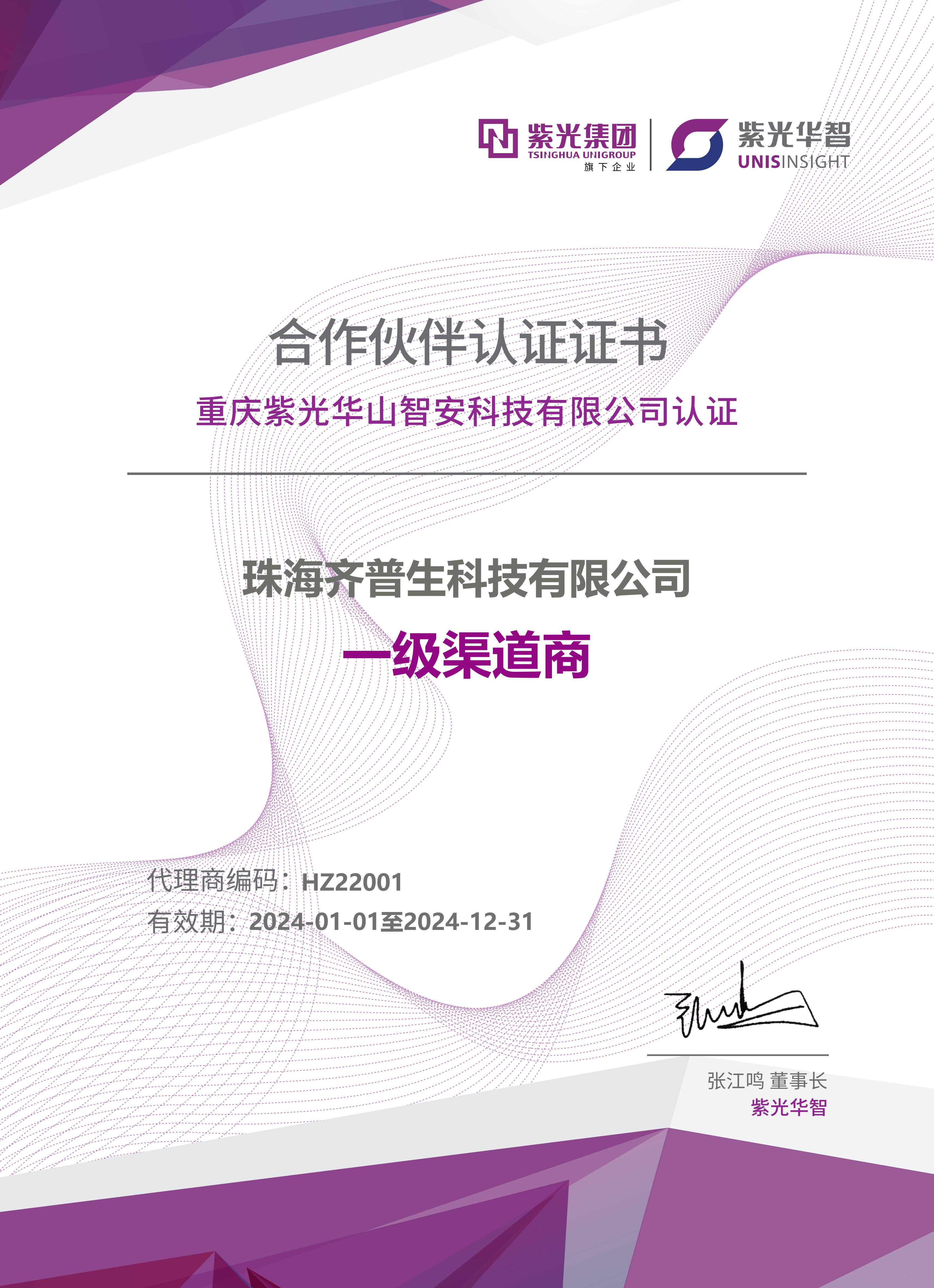 • 2024紫光華智一級(jí)渠道商(珠海公司)