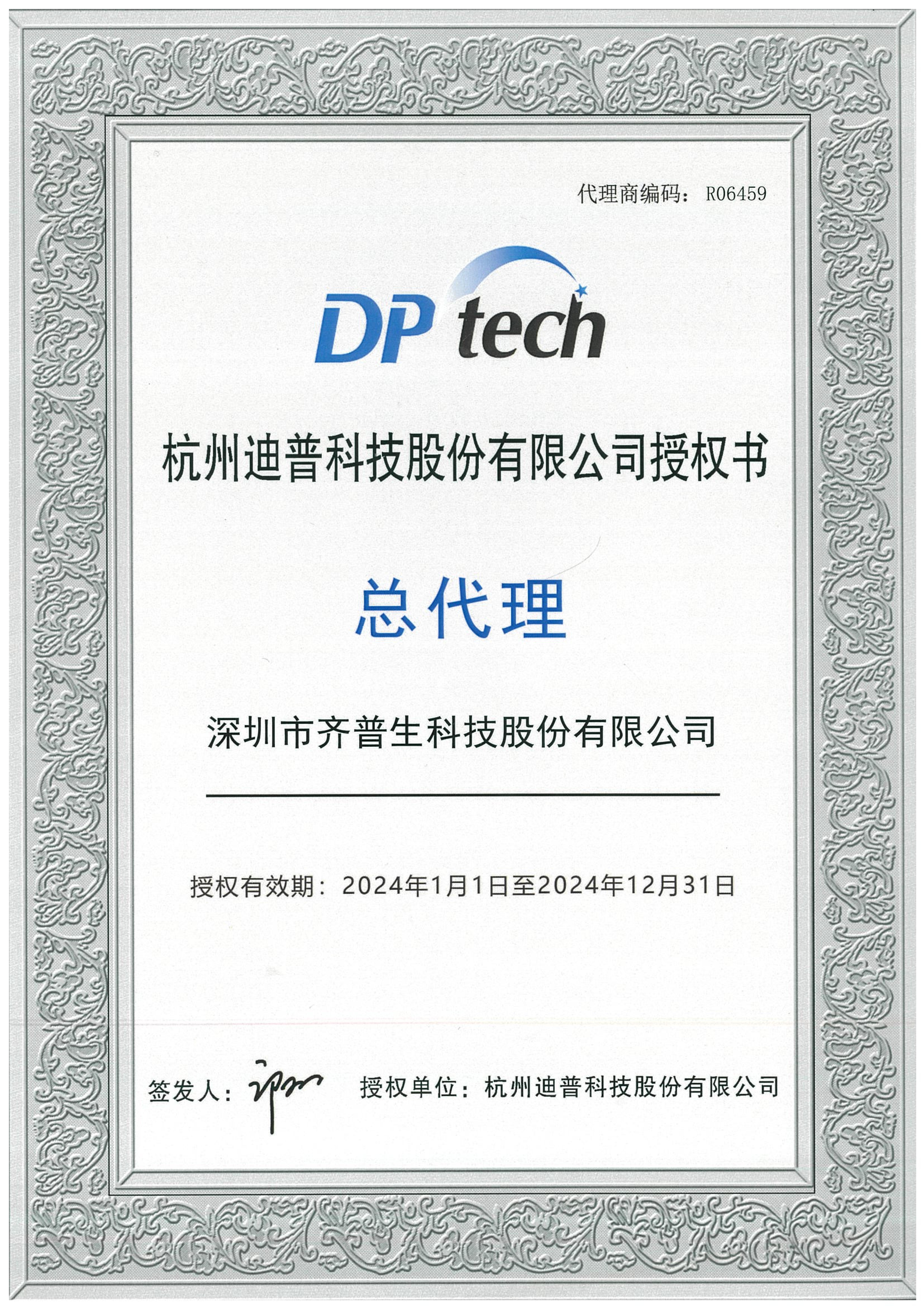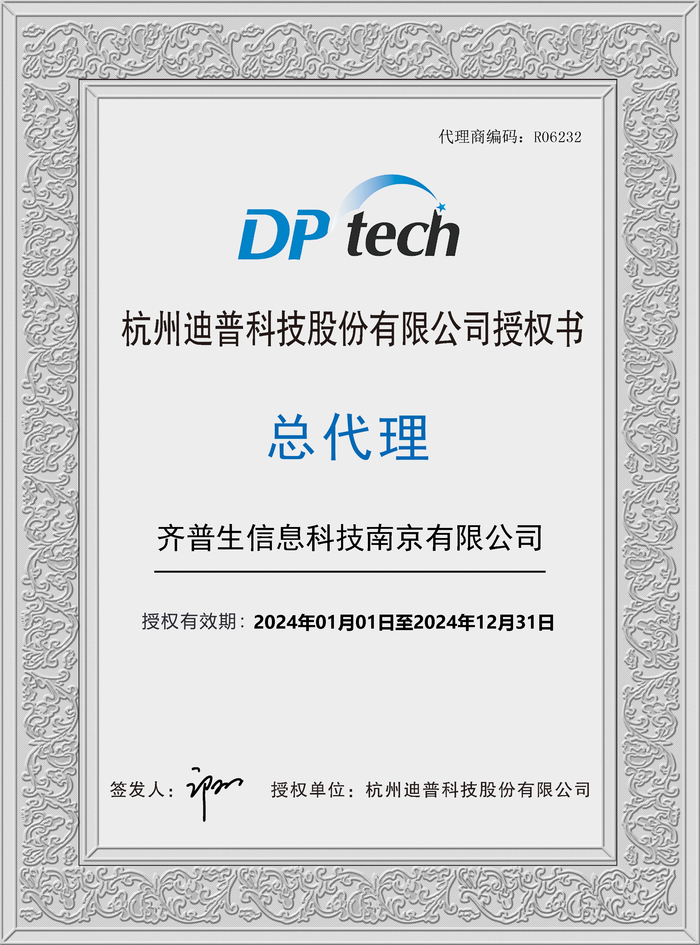• 2024年迪普總代理證書(shū)(南京公司)