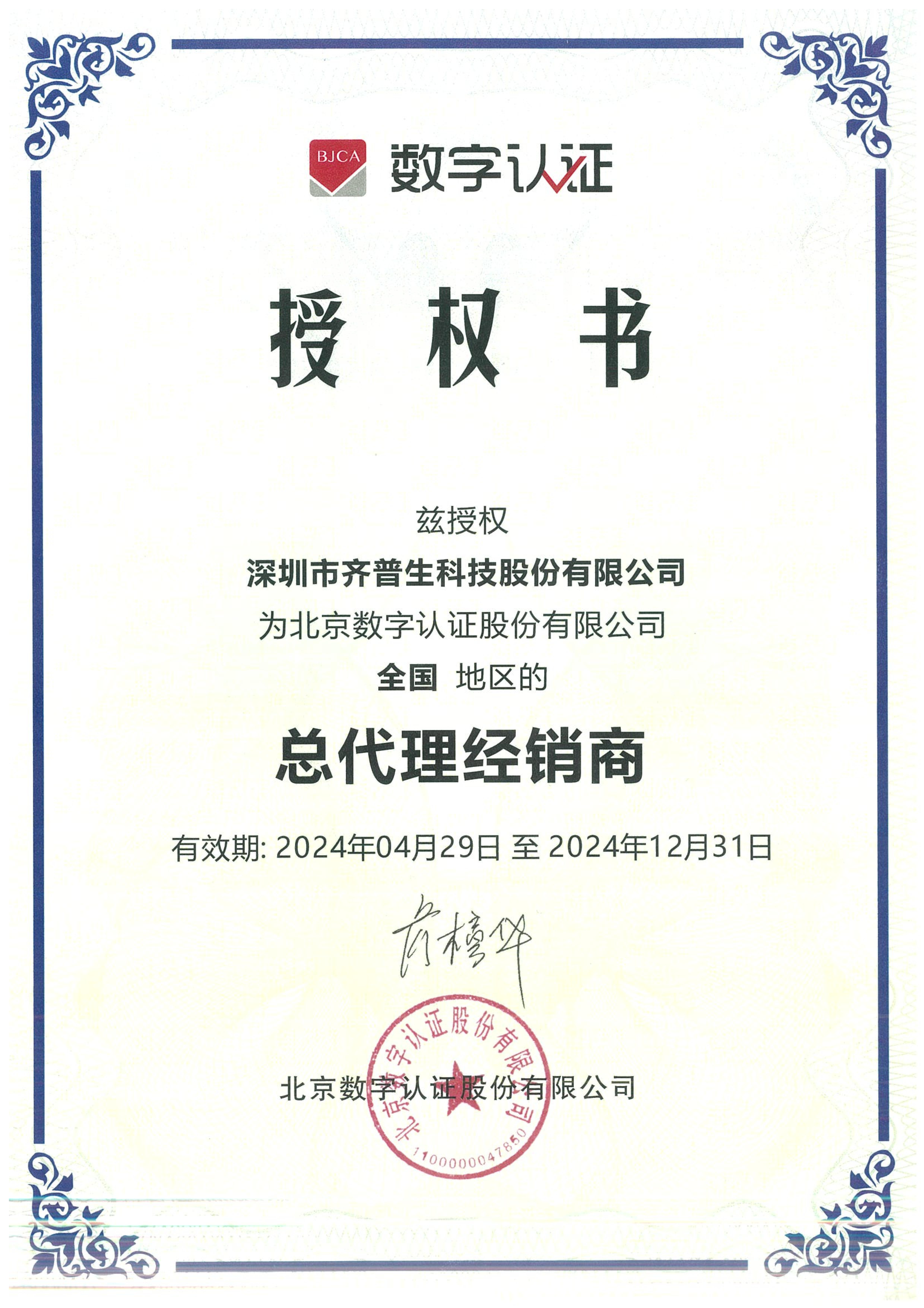 • 數(shù)字認(rèn)證總代證書(shū)