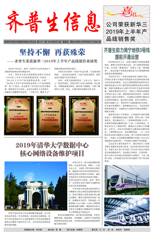 堅(jiān)持不懈 再獲殊榮 ------齊普生榮獲新華三2019年上半年產(chǎn)品線銷售業(yè)績獎